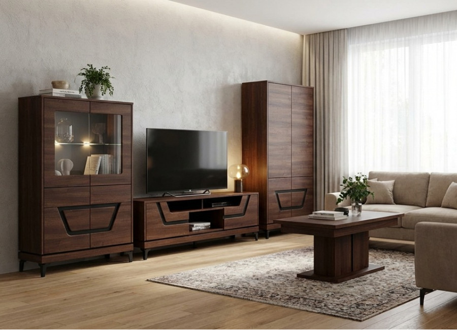 Obývacia stena VERO sa skladá z rôznych prvkov: stolíky pod TV, komody, vitríny, skrine aj konf. stolík a polica, vďaka čomu je možné vytvoriť ucelený a prehľadný obývací priestor podľa individuálnych potrieb. Jednotlivé kusy na seba nadväzujú rozmerovo aj dizajnovo a umožňujú flexibilné riešenie úložného priestoru bez narušenia celkového vzhľadu miestnosti.