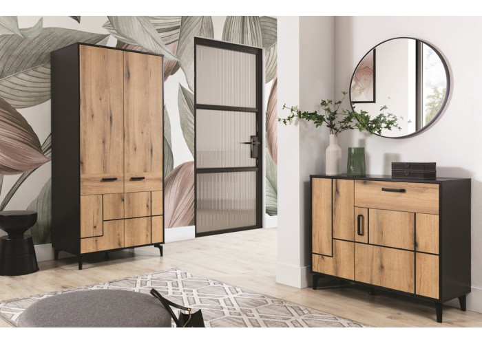 Skrinka pod TV v šírke 153 cm z produktovej rady S-Line predstavuje funkčný a estetický doplnok obývacej steny. Vyrobená je z laminovanej drevotriesky v hrúbke 16 mm s ABS hranami. Predné plochy sú z MDF materiálu, zdobené čiernymi pásmi pre docielenie originálneho vizuálneho detailu. Farebná kombinácia je čierna matná + dub evoke, vďaka čomu tento kus nábytku prirodzene zapadne do interiérov ladených v industriálnom alebo minimalistickom štýle. Stabilitu a potrebnú vzdušnosť celej konštrukcie zabezpečujú 12 cm vysoké nožičky, ktoré oceníte najmä pri upratovaní pomocou robotického vysávača.
