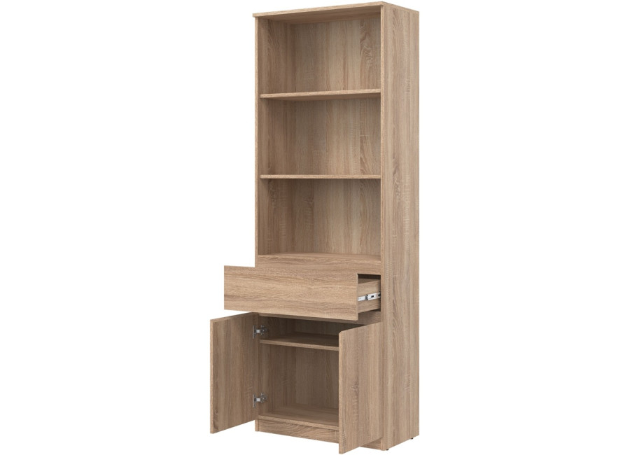 Úložný priestor tvoria dvoje dvierka a jedna zásuvka, doplnené o otvorený priestor s policami. Skriňa je vhodná na uloženie kníh, dokumentov, dekorácií aj drobných predmetov každodennej potreby. Svoje využitie nájde nielen v obývačke, ale aj v detských izbách, kde poslúži na školské pomôcky, hry alebo oblečenie.