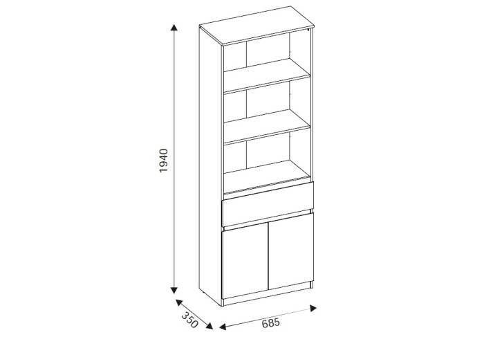 Úložný priestor tvoria dvoje dvierka a jedna zásuvka, doplnené o otvorený priestor s policami. Skriňa je vhodná na uloženie kníh, dokumentov, dekorácií aj drobných predmetov každodennej potreby. Svoje využitie nájde nielen v obývačke, ale aj v detských izbách, kde poslúži na školské pomôcky, hry alebo oblečenie.