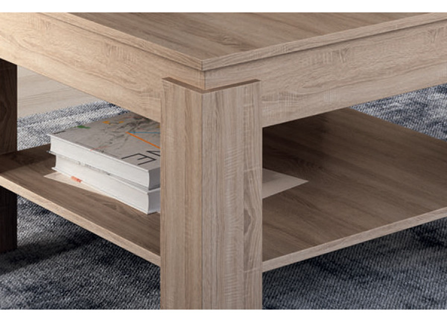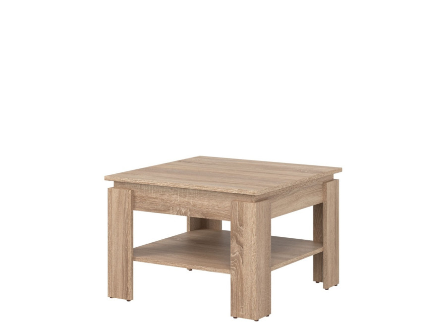 Konferenčný stolík REMI LA05 v rozmere 67,5 x 67,5 cm, s policou, je vhodný k menším sedacím súpravám. Vďaka štvorcovému pôdorysu nezaberá zbytočne veľa miesta, no zároveň ponúka dostatočnú plochu na odloženie šálky kávy, rozčítanej knihy alebo dekorácií. Malý stolík do obývačky sa vďaka svojmu minimalistickému vzhľadu ľahko kombinuje s ostatnými prvkami nábytku. Vyrobený je z laminovanej drevotriesky v hrúbke 16 mm s ABS hranami. Farebné prevedenie je dub sonoma. Spodná polica slúži ako skrytý priestor pre veci, ktoré chcete mať po ruke, napr. na odloženie časopisov, televíznych ovládačov či notebooku.