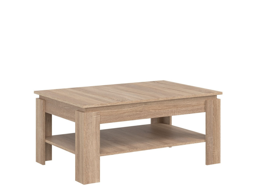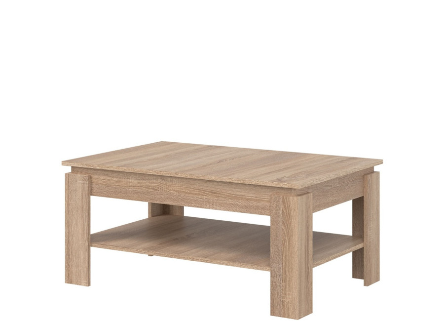 Konferenčný stolík REMI LA05 v rozmere 101,5 x 67,5 cm, s policou, je vhodný k väčsím sedacím súpravám. Vďaka obdĺžníkovému pôdorysu nezaberá zbytočne veľa miesta, no zároveň ponúka dostatočnú plochu na odloženie šálky kávy, rozčítanej knihy alebo dekorácií. Stolík do obývačky sa vďaka svojmu minimalistickému vzhľadu ľahko kombinuje s ostatnými prvkami nábytku. Vyrobený je z laminovanej drevotriesky v hrúbke 16 mm s ABS hranami. Farebné prevedenie je dub sonoma. Spodná polica slúži ako skrytý priestor pre veci, ktoré chcete mať po ruke, napr. na odloženie časopisov, televíznych ovládačov či notebooku.