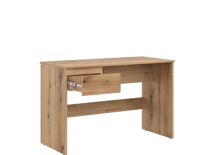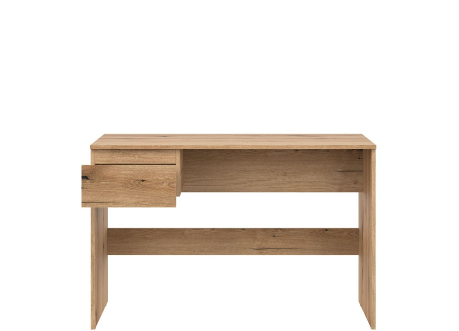 Písací stolík REMI RM15 je navrhnutý ako pracovný priestor pre študentskú izbu. V šírke 155 cm ponúka dostatočne veľkú pracovnú plochu na písanie aj štúdium. Vďaka jednoduchým líniám sa ľahko kombinuje s ostatnými kusmi sektorového nábytku a hodí sa do rôznych typov interiérov. Vyrobený je z laminovanej drevotriesky v hrúbke 16 mm s ABS hranami. Farebné prevedenie je dub evoke. Tradičné úchytky boli nahradené frézovanými prednými časťami. Má jednu malú zásuvku. Výhodou je aj možnosť, že stolík je možné zmontovať ako ľavé alebo pravé prevedenie, vďaka čomu sa dá prispôsobiť konkrétnemu priestoru a spôsobu používania.