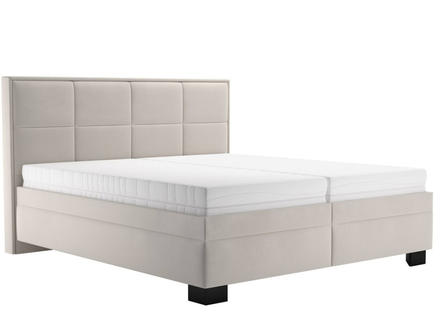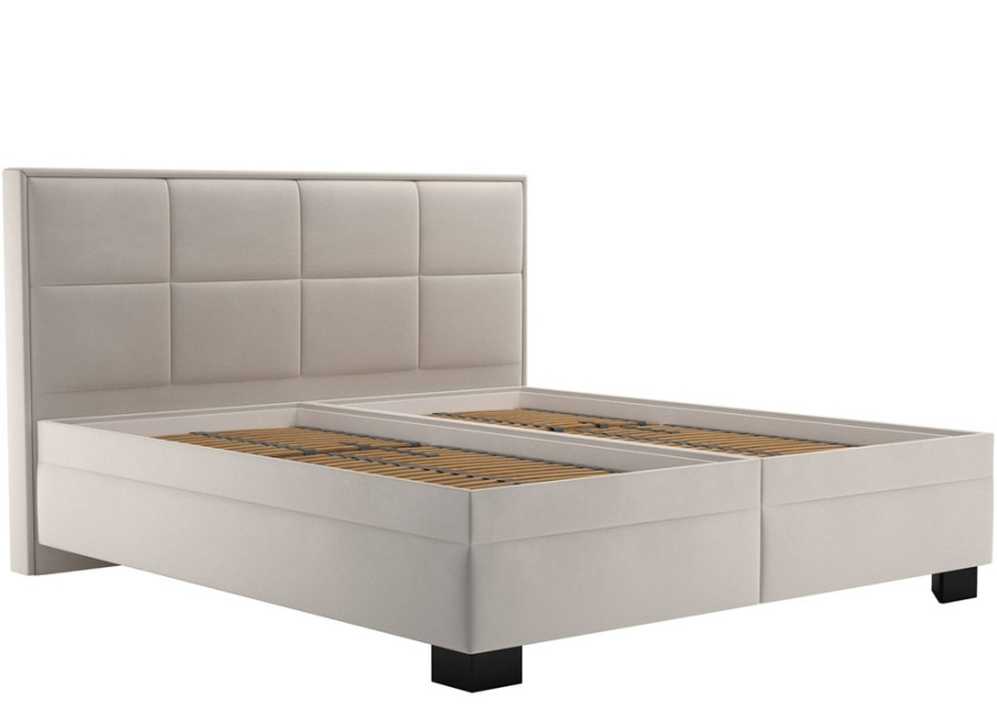 Výška čiernych nožičiek 10 cm umožňuje čistenie pod posteľou. Krémová farba čalúnenia dodáva posteli moderný a nadčasový vzhľad, ktorý sa ľahko kombinuje s akýmkoľvek interiérom.