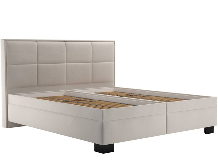 Výška čiernych nožičiek 10 cm umožňuje čistenie pod posteľou. Krémová farba čalúnenia dodáva posteli moderný a nadčasový vzhľad, ktorý sa ľahko kombinuje s akýmkoľvek interiérom.