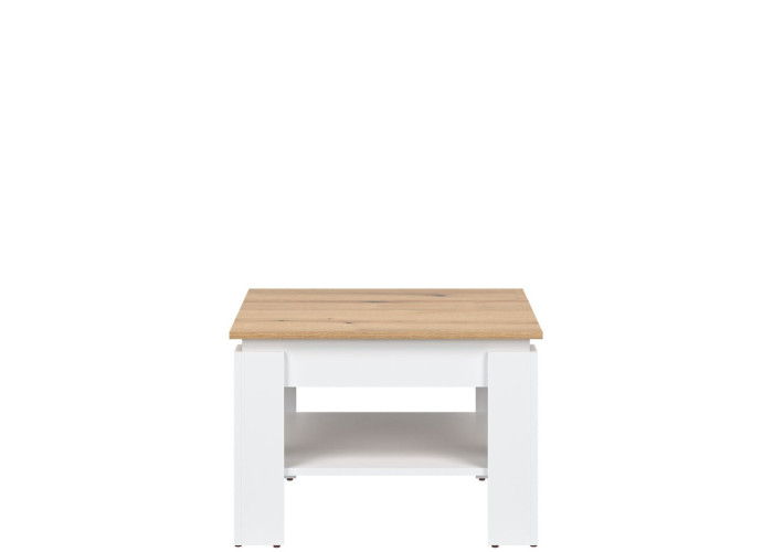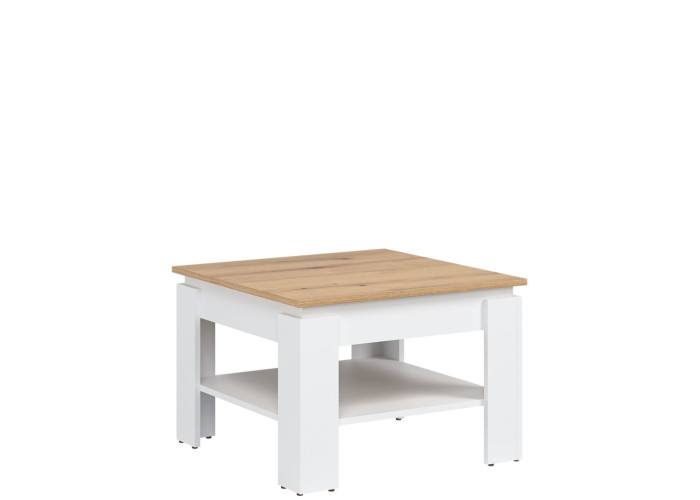 Konferenčný stolík REMI LA05 v rozmere 67,5 x 67,5 cm, s policou, je vhodný k menším sedacím súpravám. Vďaka štvorcovému pôdorysu nezaberá zbytočne veľa miesta, no zároveň ponúka dostatočnú plochu na odloženie šálky kávy, rozčítanej knihy alebo dekorácií. Malý stolík do obývačky sa vďaka svojmu minimalistickému vzhľadu ľahko kombinuje s ostatnými prvkami nábytku. Vyrobený je z laminovanej drevotriesky v hrúbke 16 mm s ABS hranami. Farebné prevedenie je biela + dub evoke. Spodná polica slúži ako skrytý priestor pre veci, ktoré chcete mať po ruke, napr. na odloženie časopisov, televíznych ovládačov či notebooku.