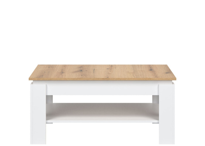 Konferenčný stolík REMI LA05 v rozmere 101,5 x 67,5 cm, s policou, je vhodný k väčsím sedacím súpravám. Vďaka obdĺžníkovému pôdorysu nezaberá zbytočne veľa miesta, no zároveň ponúka dostatočnú plochu na odloženie šálky kávy, rozčítanej knihy alebo dekorácií. Stolík do obývačky sa vďaka svojmu minimalistickému vzhľadu ľahko kombinuje s ostatnými prvkami nábytku. Vyrobený je z laminovanej drevotriesky v hrúbke 16 mm s ABS hranami. Farebné prevedenie je biela + dub evoke. Spodná polica slúži ako skrytý priestor pre veci, ktoré chcete mať po ruke, napr. na odloženie časopisov, televíznych ovládačov či notebooku.