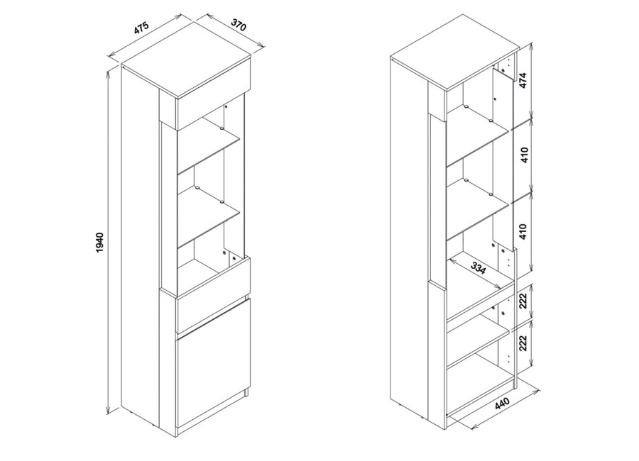 Vitrína REMI RM07 je praktickým doplnkom do moderného aj klasického interiéru. Ide o vitrínu v šírke 47,5 cm, ktorá sa vďaka kompaktným rozmerom hodí aj do menších miestností. Je súčasťou sektorového nábytku REMI, takže ju možno jednoducho zladiť s ďalšími prvkami do ucelenej zostavy. Vyrobená je z laminovanej drevotriesky v hrúbke 16 mm s ABS hranami. Farebné prevedenie je biela + dub evoke. Vitrína má dvoje dvierka (univerzálne), vrchné sú presklené. Využitie nájde v obývačke ako súčasť obývacej steny, ale aj v detských izbách na knihy, hry či trofeje.