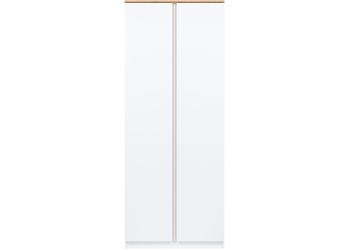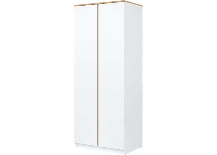 Šatníkovo-policová skriňa REMI RM10 v šírke 78 cm je vhodná aj do menších miestností alebo ako doplnok k väčšej zostave. Vyrobená je z laminovanej drevotriesky v hrúbke 16 mm s ABS hranami. Farebné prevedenie je biela + dub evoke. Má dvoje dvierka, pričom tradičné úchytky boli nahradené frézovanými hranami vo farbe dub. Vnútorné usporiadanie umožňuje zavesiť oblečenie na vešiakovú tyč, druhá polovica skrine je policová. Skriňa sa osvedčí nielen v obývačke, ale aj v detských izbách, kde poskytne praktický priestor na oblečenie, školské potreby či hračky.