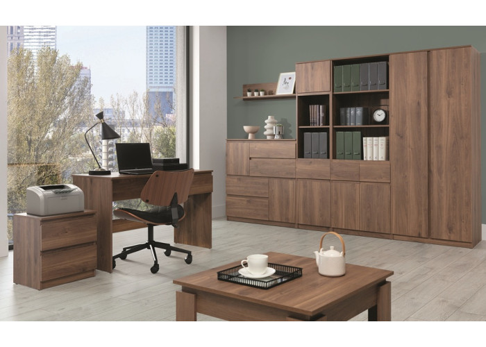 Obývacia stena REMI ponúka kombináciu rôznych prvkov: TV stolík, komody, vitríny, skrine, konferenčné stolíky aj police. Vďaka tomu si jednoducho vytvoríte harmonický a funkčný obývací priestor presne podľa svojich potrieb. Jednotlivé kusy na seba plynulo nadväzujú rozmermi aj dizajnom a poskytujú flexibilné riešenia úložného priestoru bez toho, aby narušili celkový vzhľad miestnosti.