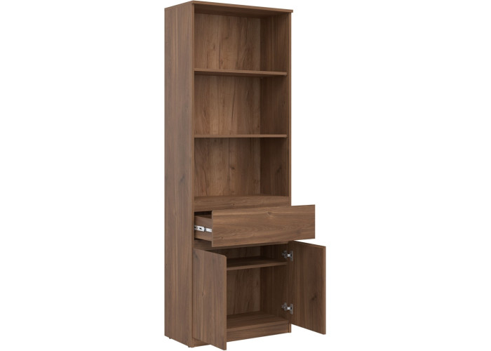 Úložný priestor tvoria dvoje dvierka a jedna zásuvka, doplnené o otvorený priestor s policami. Skriňa je vhodná na uloženie kníh, dokumentov, dekorácií aj drobných predmetov každodennej potreby. Svoje využitie nájde nielen v obývačke, ale aj v detských izbách, kde poslúži na školské pomôcky, hry alebo oblečenie.