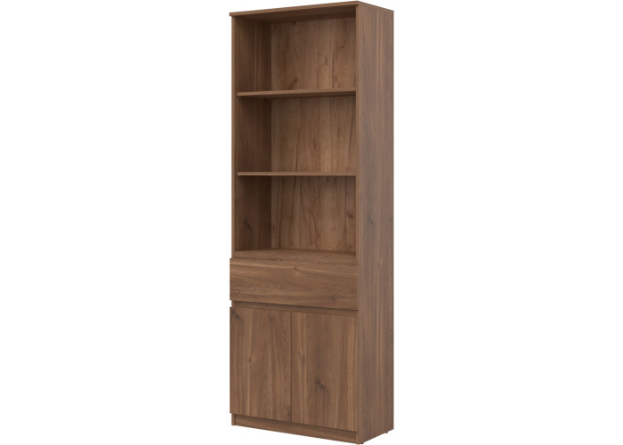 Policová skriňa REMI RM09 predstavuje praktický úložný prvok, ktorý sa uplatní v rôznych typoch interiérov. Ide o policovú skriňu resp. regál v šírke 68,5 cm, vďaka čomu je vhodná aj do menších miestností. Vyrobená je z laminovanej drevotriesky v hrúbke 16 mm s ABS hranami. Farebné prevedenie je dub castello. Tradičné úchytky boli nahradené frézovanými hranami.