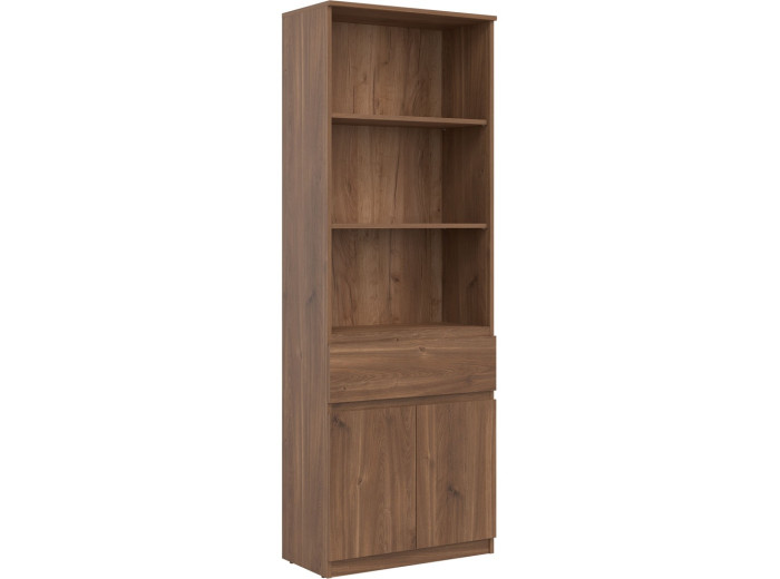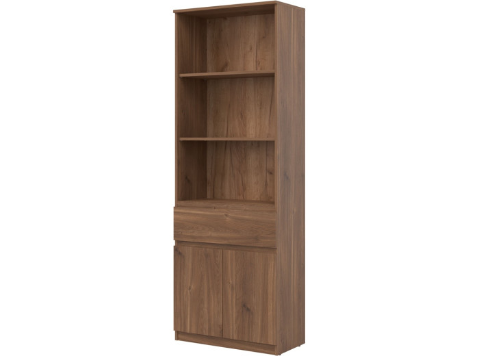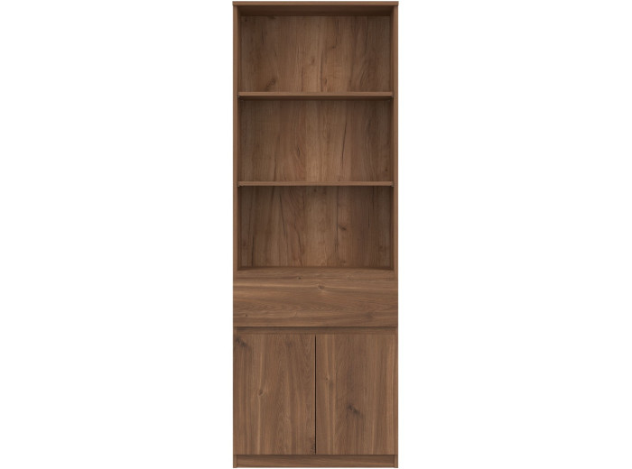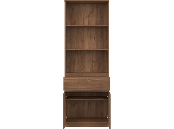 Policová skriňa REMI RM09 predstavuje praktický úložný prvok, ktorý sa uplatní v rôznych typoch interiérov. Ide o policovú skriňu resp. regál v šírke 68,5 cm, vďaka čomu je vhodná aj do menších miestností. Vyrobená je z laminovanej drevotriesky v hrúbke 16 mm s ABS hranami. Farebné prevedenie je dub castello. Tradičné úchytky boli nahradené frézovanými hranami.