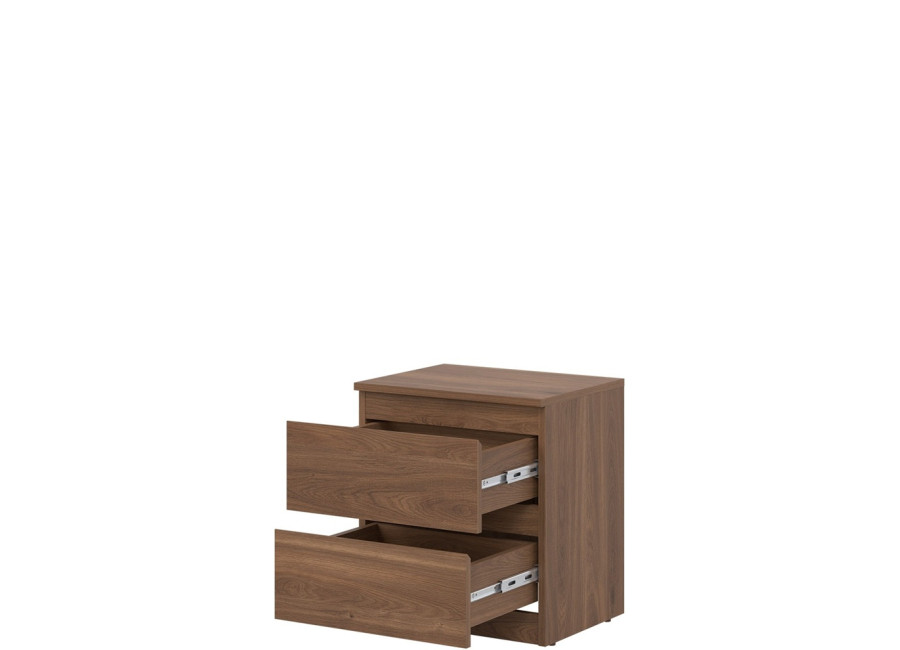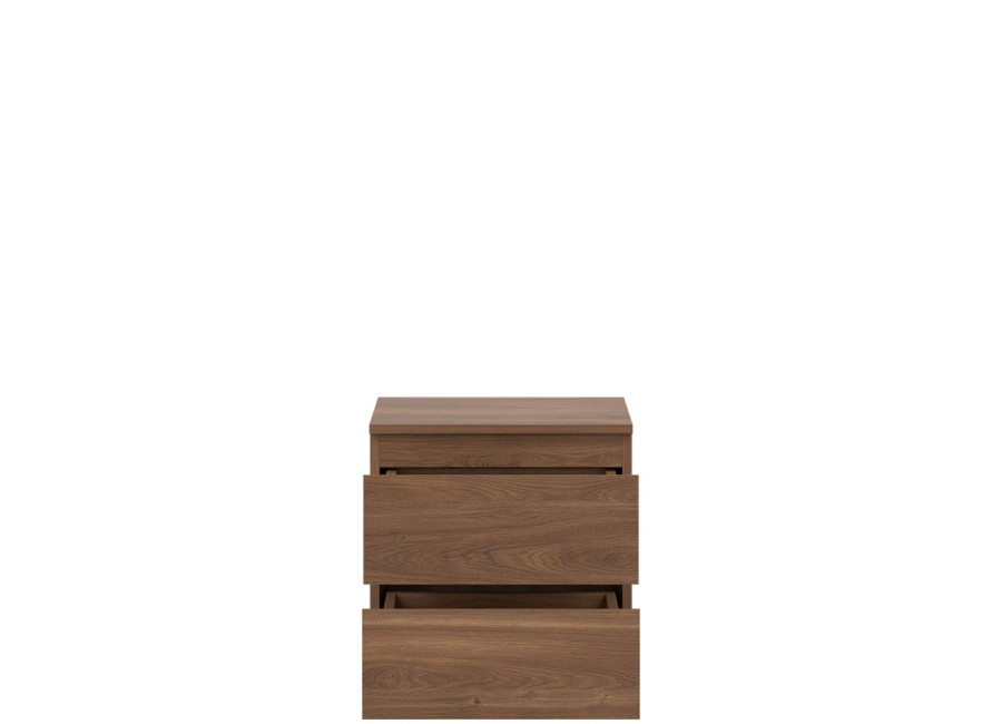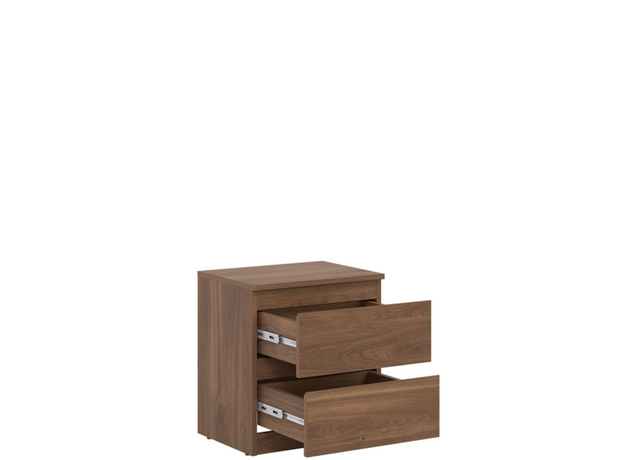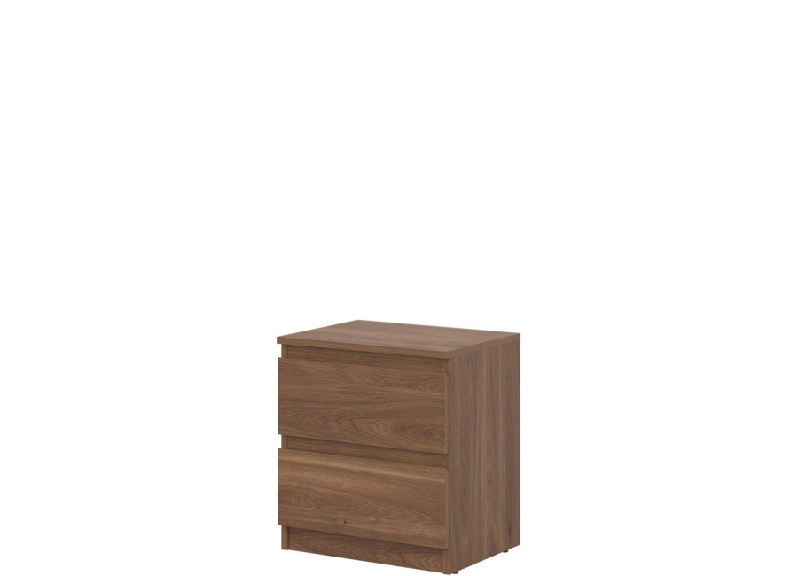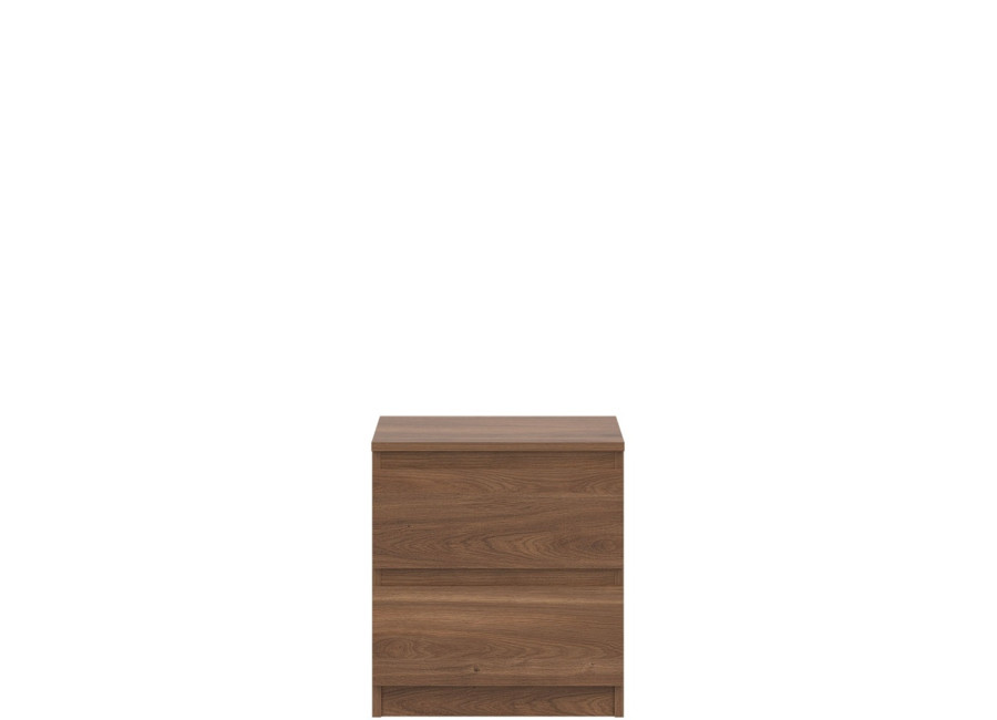 Nočný stolík REMI RM12 v šírke 45,5 cm ponúka dostatočnú odkladaciu plochu na lampu, budík alebo knihu. Svojím jednoduchým tvarom sa ľahko začlení do rôznych typov spální a doplní aj zostavy sektorového nábytku. Vyrobený je z laminovanej drevotriesky v hrúbke 16 mm s ABS hranami. Farebné prevedenie je dub castello. Tradičné úchytky boli nahradené frézovanými hranami. Úložný priestor tvoria dve zásuvky, vhodné na uloženie drobností, ako sú okuliare, nabíjačka, knihy alebo osobné predmety.