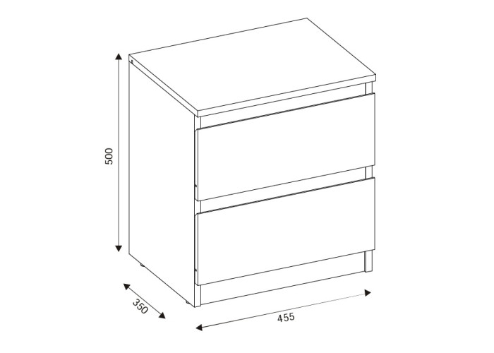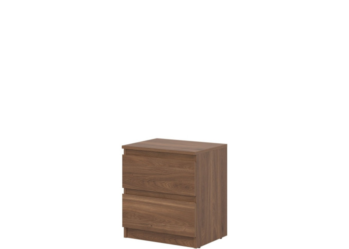 Nočný stolík REMI RM12 v šírke 45,5 cm ponúka dostatočnú odkladaciu plochu na lampu, budík alebo knihu. Svojím jednoduchým tvarom sa ľahko začlení do rôznych typov spální a doplní aj zostavy sektorového nábytku. Vyrobený je z laminovanej drevotriesky v hrúbke 16 mm s ABS hranami. Farebné prevedenie je dub castello. Tradičné úchytky boli nahradené frézovanými hranami. Úložný priestor tvoria dve zásuvky, vhodné na uloženie drobností, ako sú okuliare, nabíjačka, knihy alebo osobné predmety.