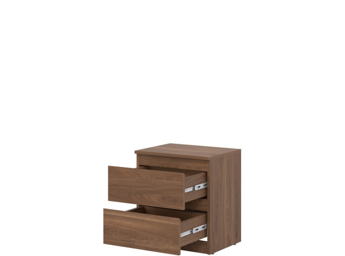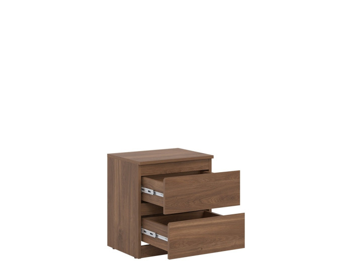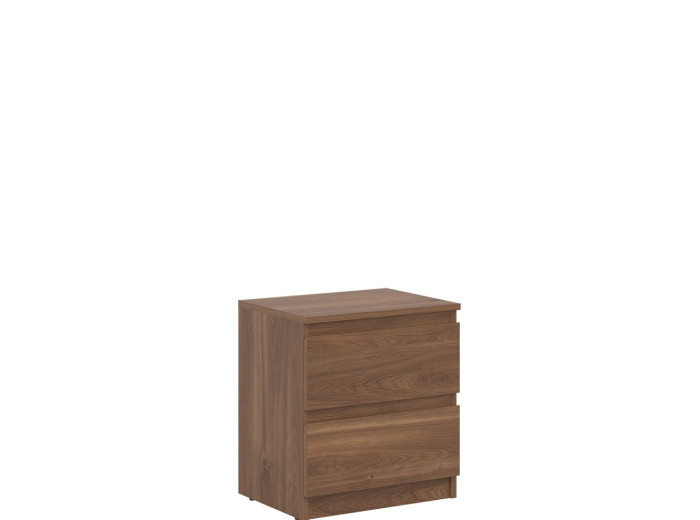 Nočný stolík REMI RM12 v šírke 45,5 cm ponúka dostatočnú odkladaciu plochu na lampu, budík alebo knihu. Svojím jednoduchým tvarom sa ľahko začlení do rôznych typov spální a doplní aj zostavy sektorového nábytku. Vyrobený je z laminovanej drevotriesky v hrúbke 16 mm s ABS hranami. Farebné prevedenie je dub castello. Tradičné úchytky boli nahradené frézovanými hranami. Úložný priestor tvoria dve zásuvky, vhodné na uloženie drobností, ako sú okuliare, nabíjačka, knihy alebo osobné predmety.