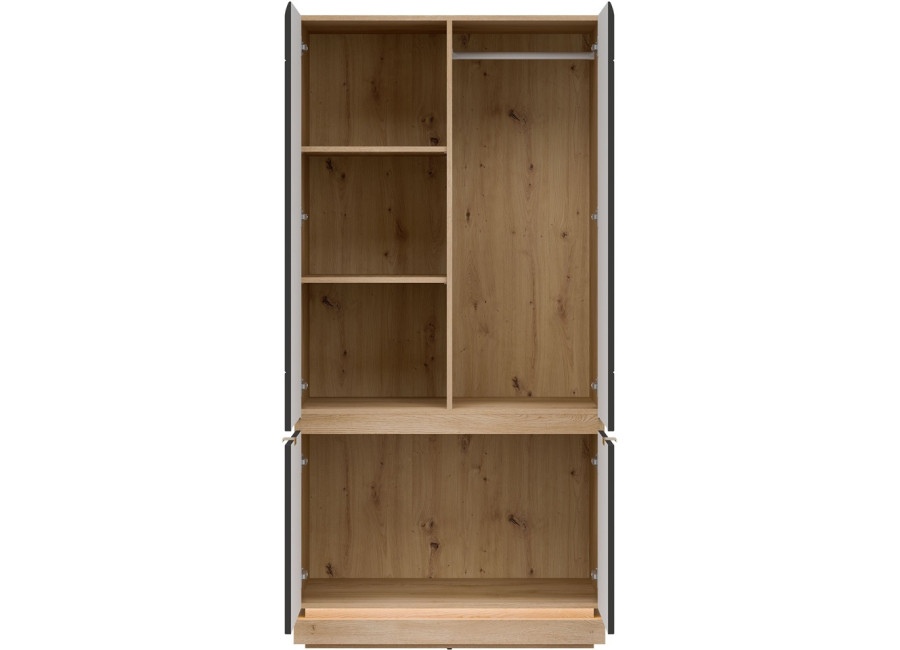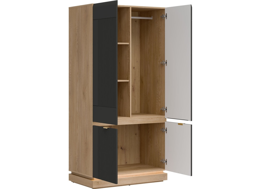 Šatníková skriňa MILTON ML08 praktickým a štýlovým nábytkom do obývačky, spálne aj predsiene. So šírkou 95 cm ponúka dostatok úložného priestoru na oblečenie, kabáty, sezónne kúsky či rôzne domáce doplnky. Štyri dvierka ukrývajú prehľadne usporiadaný vnútorný priestor, vďaka ktorému budete mať všetko vždy na svojom mieste.