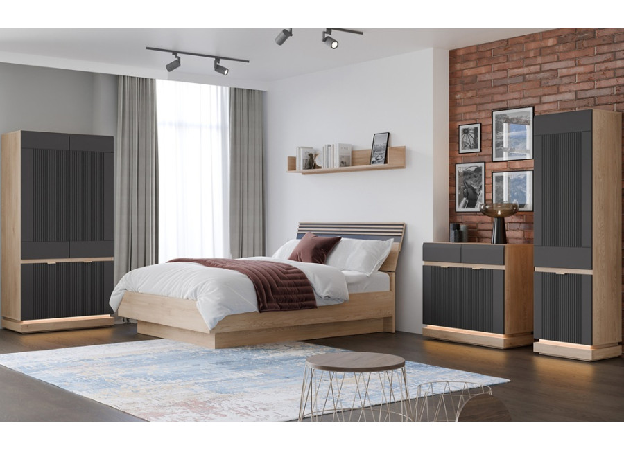 - predné plochy z MDF materiálu v matnej farbe antracit, zdobené jemným zvislým drážkovaním,