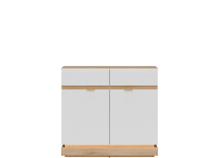 - predné plochy z MDF materiálu v bielej matnej farbe, zdobené jemným zvislým drážkovaním,