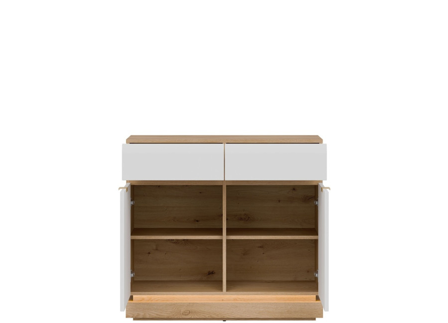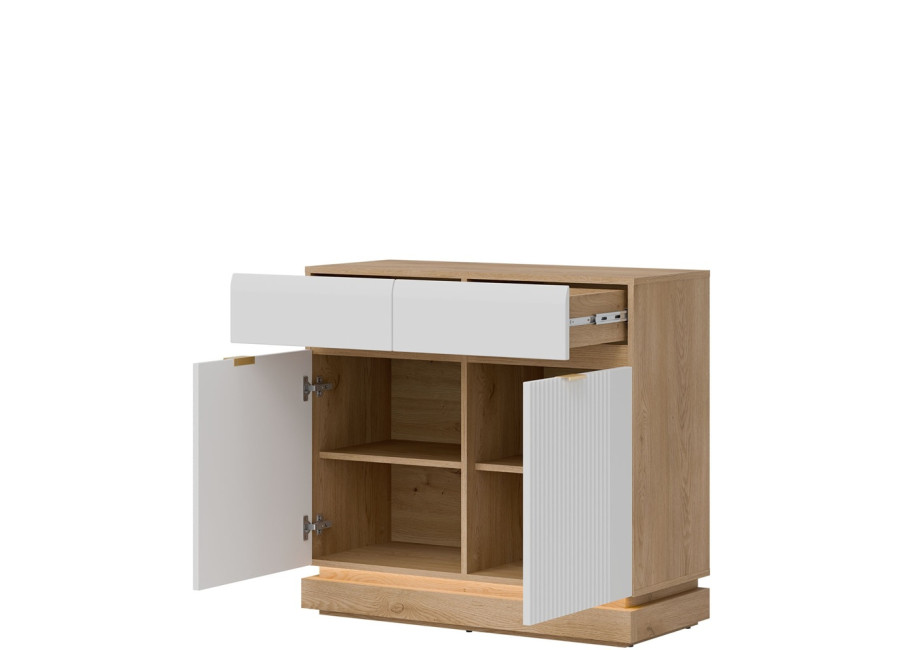 Komoda MILTON ML02 je štýlové a praktické riešenie úložného priestoru do obývačky, študentskej izby aj spálne. Ponúka dostatok miesta na všetko, čo chcete mať prehľadne usporiadané a vždy po ruke. Zásuvky spoľahlivo ukryjú časopisy, dokumenty či drobné predmety, zatiaľ čo väčšie veci jednoducho uložíte do časti s policou za dvierkami.