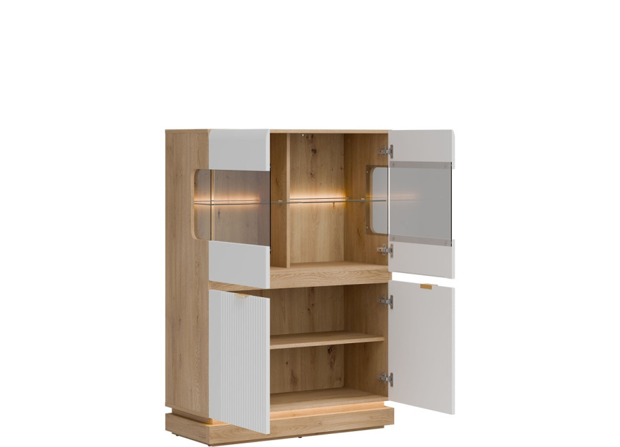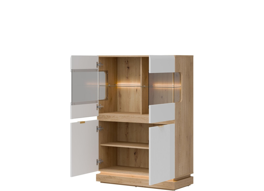 Vitrína MILTON ML04 je štýlovým a zároveň praktickým riešením úložného priestoru do vašej obývačky. Elegantná presklená horná časť vytvára ideálne miesto na vystavenie dekorácií, rodinných fotografií či obľúbených doplnkov, ktoré si zaslúžia pozornosť.