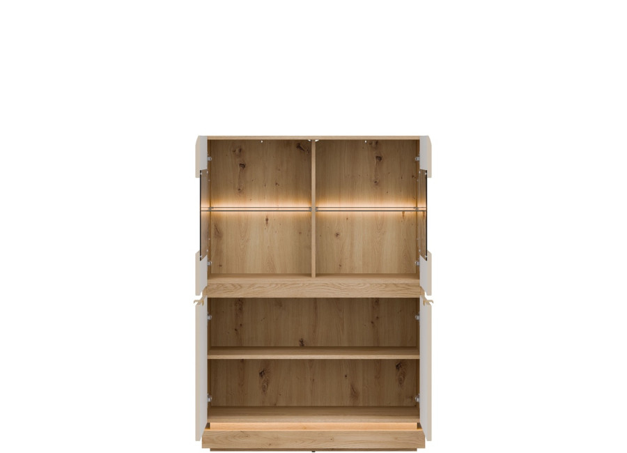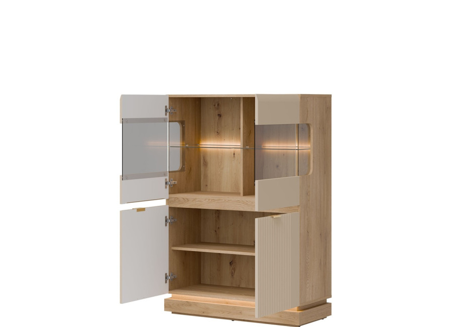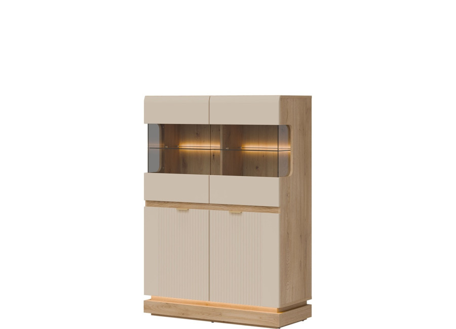 Vitrína MILTON ML04 je štýlovým a zároveň praktickým riešením úložného priestoru do vašej obývačky. Elegantná presklená horná časť vytvára ideálne miesto na vystavenie dekorácií, rodinných fotografií či obľúbených doplnkov, ktoré si zaslúžia pozornosť.