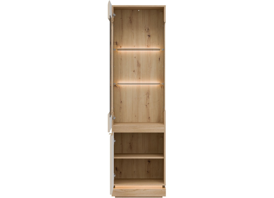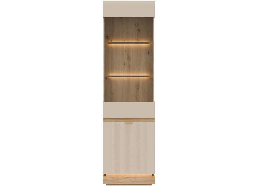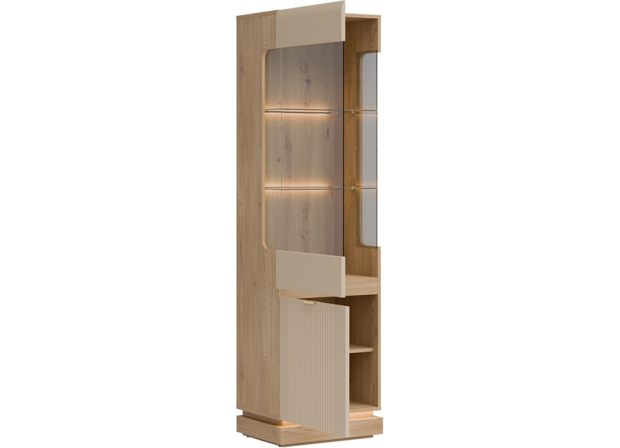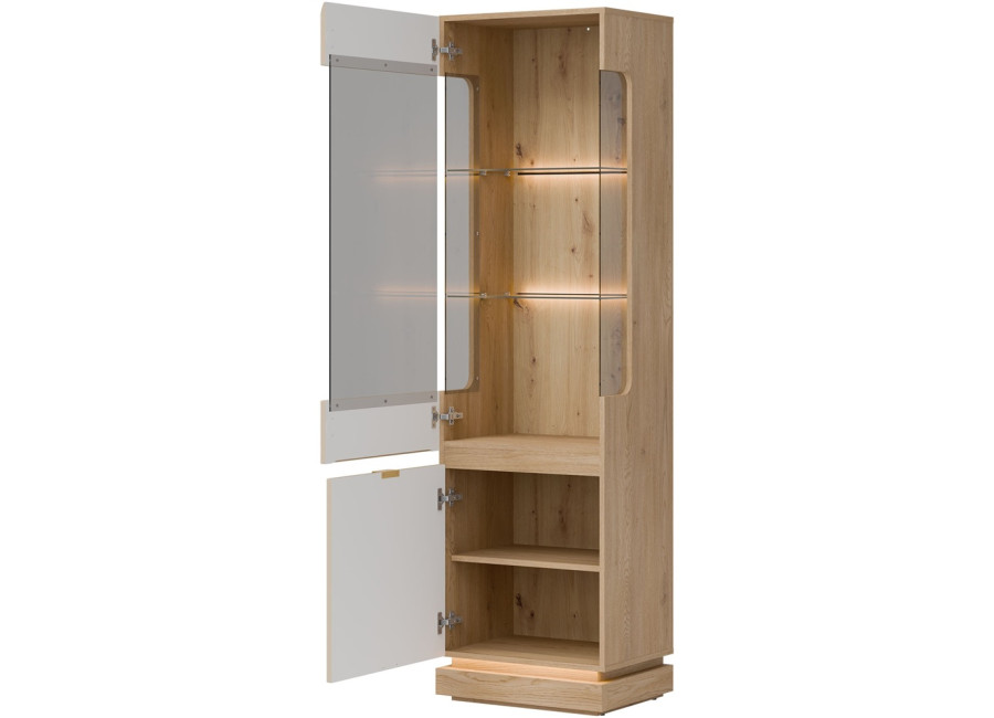 Vysoká vitrína MILTON ML05 je ideálnym riešením pre každú obývačku, kde potrebujete štýlovo vyriešiť úložný priestor. Ponúka dostatok miesta na všetko, čo chcete mať prehľadne usporiadané a zároveň po ruke. Presklenená horná časť elegantne vystaví Vaše obľúbené dekorácie, rodinné fotografie či dizajnové doplnky a dodá interiéru osobitý charakter.