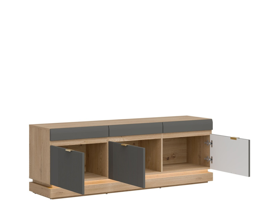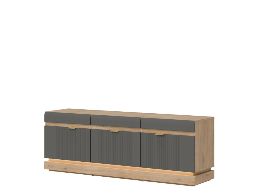 TV skrinka MILTON poskytuje dostatok úložného priestoru pre uloženie rôznych veci. Predstavuje ideálnu súhru funkčnosti a štýlu, ktorá vkusne podčiarkne moderný charakter Vašej obývačky.