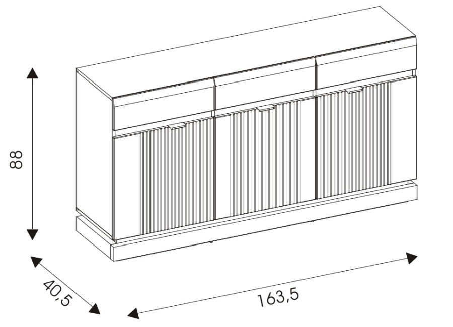 - komoda v šírke 163,5 cm,