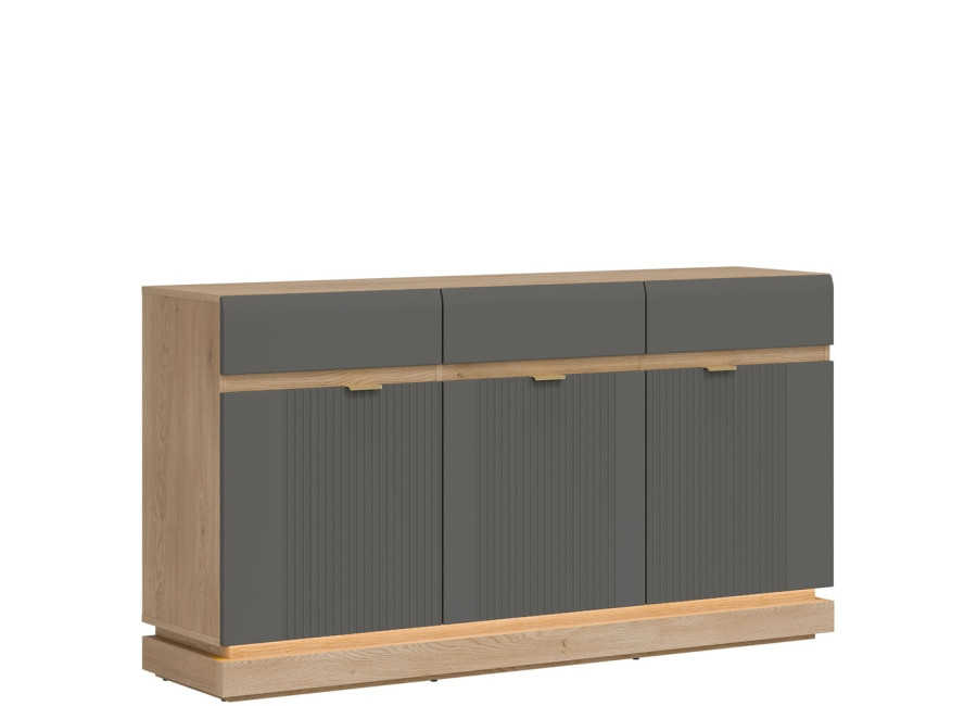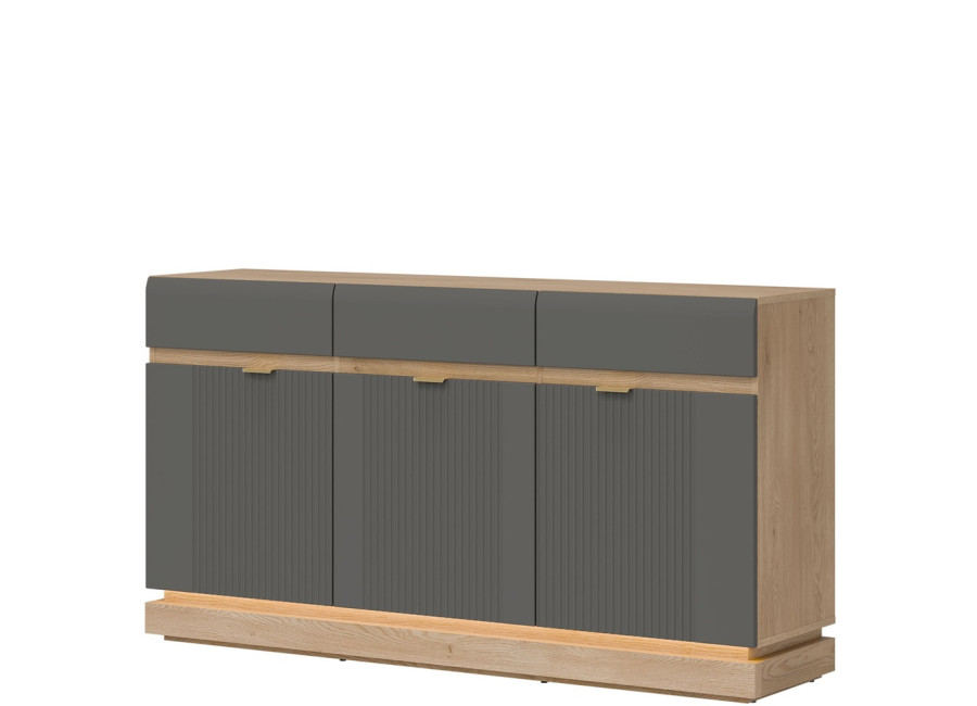- predné plochy z MDF materiálu v sivej matnej farbe, zdobené jemným zvislým drážkovaním,