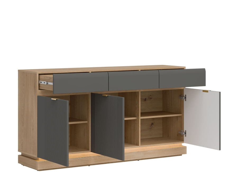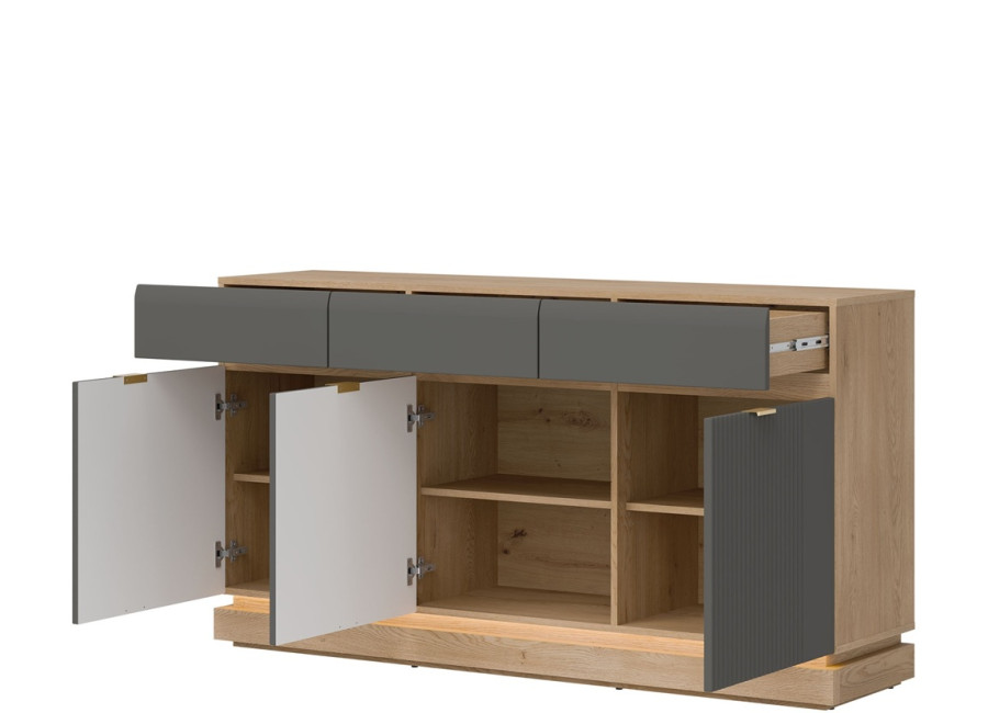 Komoda MILTON ML03 je praktickým a štýlovým riešením pre vašu obývačku, študentskú izbu aj spálňu. Ponúka úložný priestor, ktorý vám pomôže udržať poriadok. Zásuvky sú ideálne na časopisy, dokumenty či drobnosti, ktoré chcete mať vždy poruke. Väčšie predmety jednoducho uložíte za dvierka s vnútornou policou.