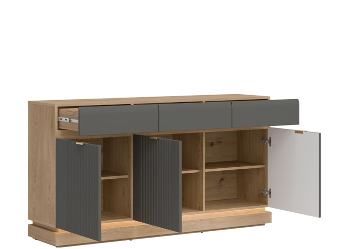 Komoda MILTON ML03 je praktickým a štýlovým riešením pre vašu obývačku, študentskú izbu aj spálňu. Ponúka úložný priestor, ktorý vám pomôže udržať poriadok. Zásuvky sú ideálne na časopisy, dokumenty či drobnosti, ktoré chcete mať vždy poruke. Väčšie predmety jednoducho uložíte za dvierka s vnútornou policou.