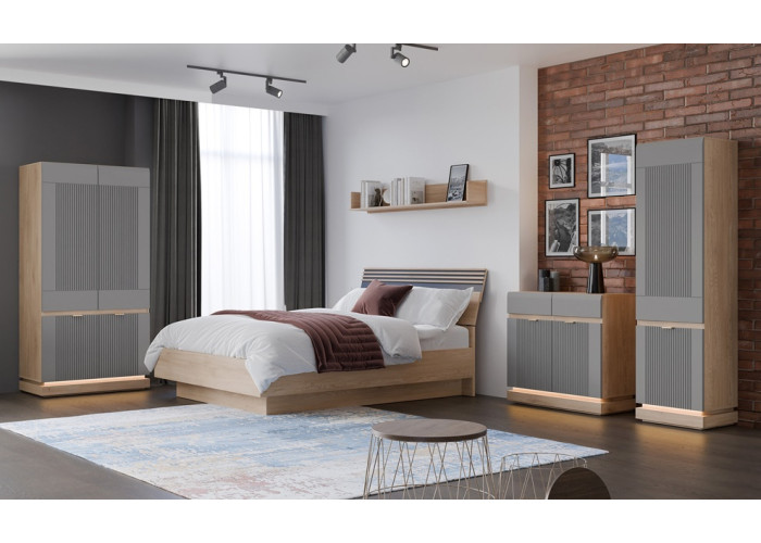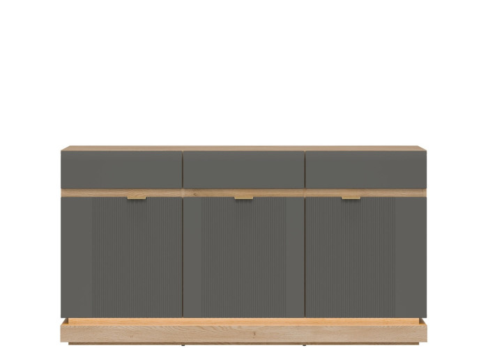- predné plochy z MDF materiálu v sivej matnej farbe, zdobené jemným zvislým drážkovaním,