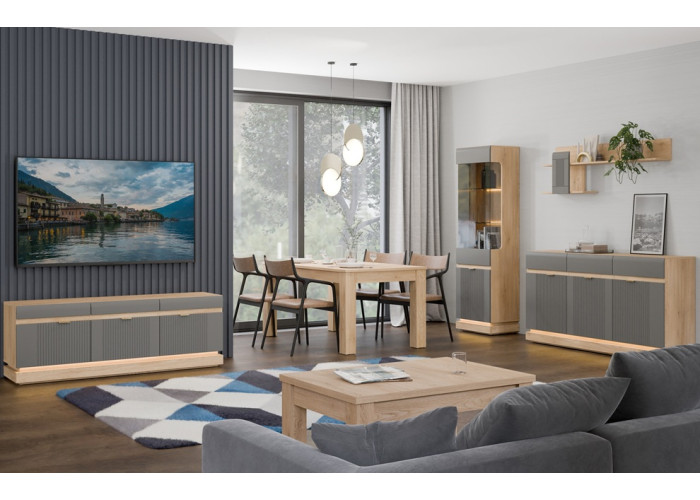 Sektorový nábytok MILTON prináša do vašej obývačky poriadok a štýl v jednom. Vďaka širokej škále prvkov, ako sú TV stolíky, komody, vitríny, skrine či konferenčný stolík, si ľahko vyskladáte zostavu na mieru svojim potrebám. Všetky kusy spolu vizuálne aj rozmerovo ladia, takže získate potrebný úložný priestor bez toho, aby ste narušili harmóniu Vášho domova.