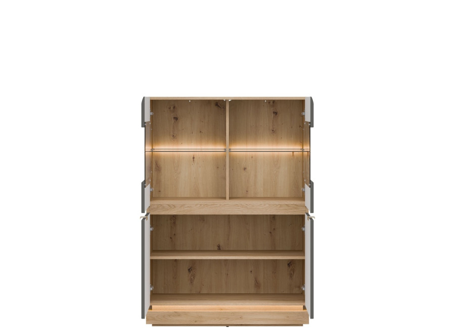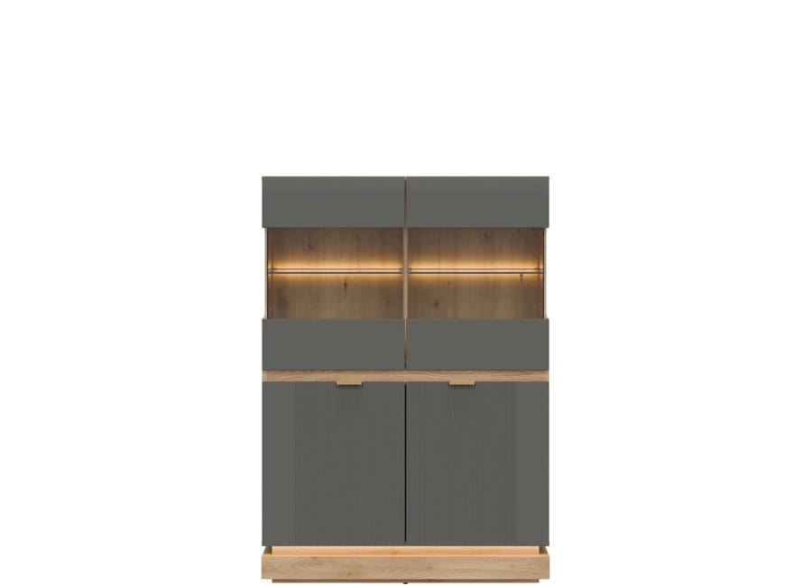 Vitrína MILTON ML04 je štýlovým a zároveň praktickým riešením úložného priestoru do vašej obývačky. Elegantná presklená horná časť vytvára ideálne miesto na vystavenie dekorácií, rodinných fotografií či obľúbených doplnkov, ktoré si zaslúžia pozornosť.