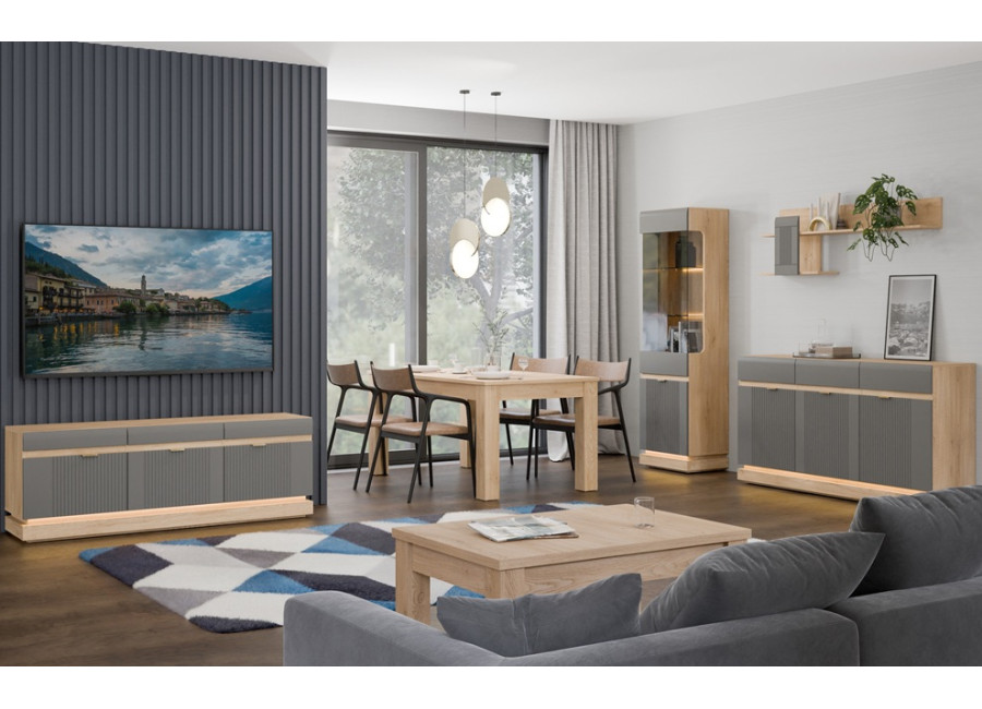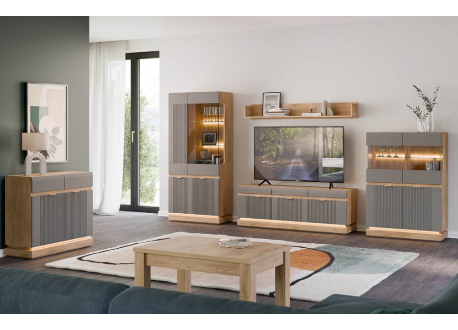 Sektorový nábytok MILTON prináša do vašej obývačky poriadok a štýl v jednom. Vďaka širokej škále prvkov, ako sú TV stolíky, komody, vitríny, skrine či konferenčný stolík, si ľahko vyskladáte zostavu na mieru svojim potrebám. Všetky kusy spolu vizuálne aj rozmerovo ladia, takže získate potrebný úložný priestor bez toho, aby ste narušili harmóniu Vášho domova.
