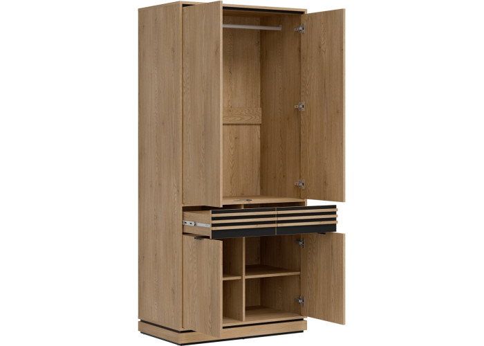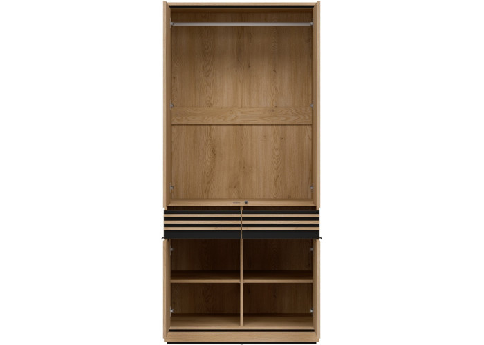 Šatníková skriňa FERRO FE08 predstavuje vkusné a funkčné riešenie, ktoré harmonicky zapadne do spálne, predsiene či obývacej izby. Vďaka svojej šírke 95 cm ponúka veľkorysú kapacitu pre Váš šatník, zimné kabáty aj sezónne doplnky.