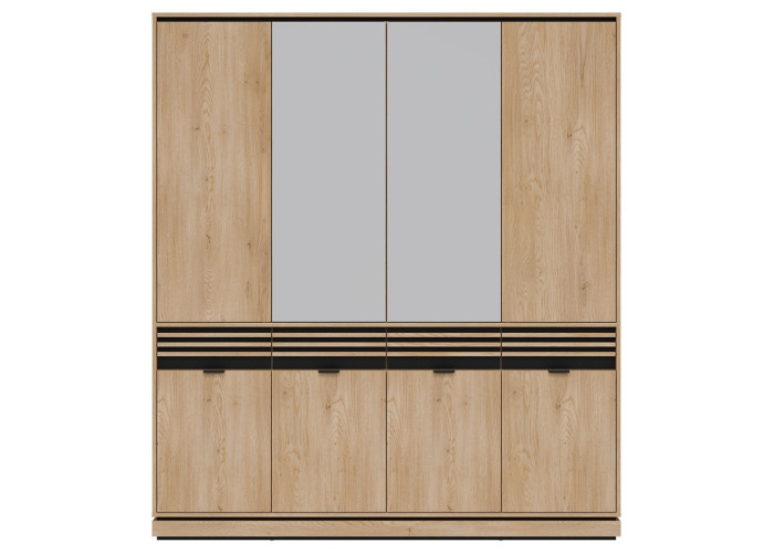 Šatníková skriňa FERRO FE11 predstavuje vkusnú kombináciu dizajnu a funkčnosti, ktorá nájde uplatnenie v spálni, predsieni aj obývacej izbe. Pri šírke 182 cm ponúka táto skriňa bohatú kapacitu pre váš kompletný šatník, sezónne oblečenie či iné domáce potreby. Vnútorné usporiadanie je šikovne rozdelené na policovú a vešiakovú časť, čo zaručuje maximálny prehľad. Praktickou vychytávkou sú horné dvierka so systémom „Push to Open“ a stredové zrkadlá, ktoré opticky zväčšujú miestnosť a uľahčujú každodennú úpravu zovňajšku.
