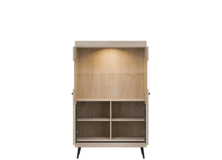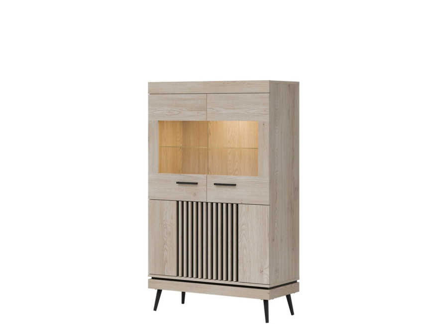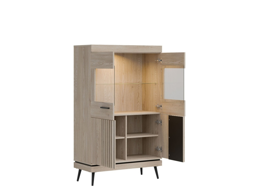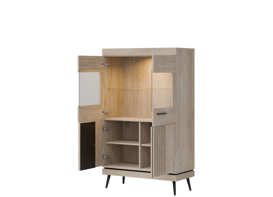 Vitrína MATI MI06 je dôkazom, že funkčnosť a dizajn patria k sebe. Tento kúsok vnesie do vašej obývačky moderný nádych a vďaka presklenej vrchnej časti vytvorí ideálny priestor pre to, na čom vám záleží – či už ide o vzácne fotografie alebo štýlové doplnky.
