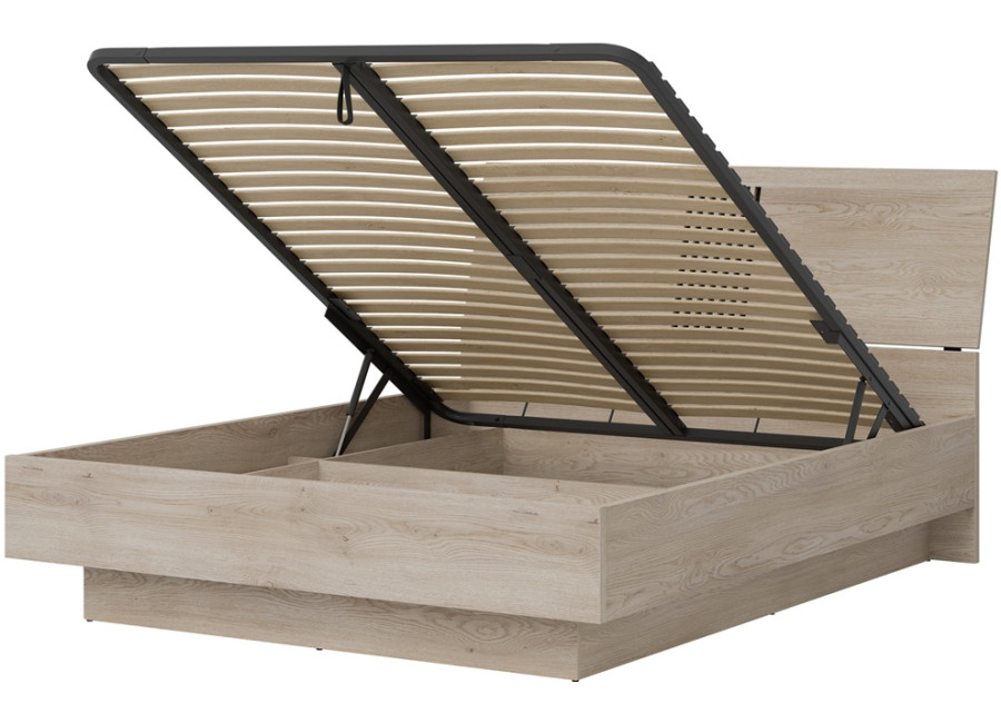 Konštrukcia je vyrobená zo 16 mm laminovanej drevotriesky, doplnenej o ABS hrany. Súčasťou postele je praktický výklopný rošt v pevnom ráme, zabezpečujúci optimálnu oporu aj dostatočné odvetrávanie matraca. Matrac nie je súčasťou balenia, čo vám dáva možnosť vybrať si presne taký typ a tvrdosť, aké vám najviac vyhovujú. Veľkou výhodou je priestranný úložný priestor ukrytý pod ložnou plochou, ku ktorému sa jednoducho dostanete pomocou výklopného mechanizmu.