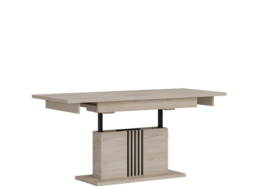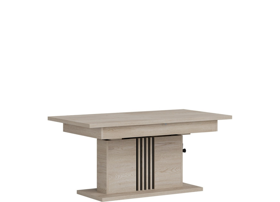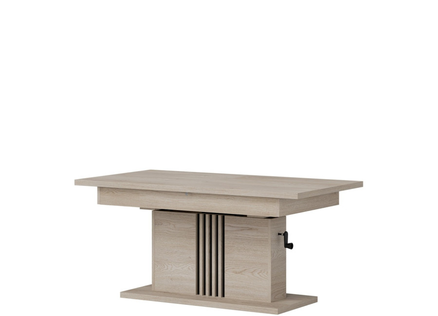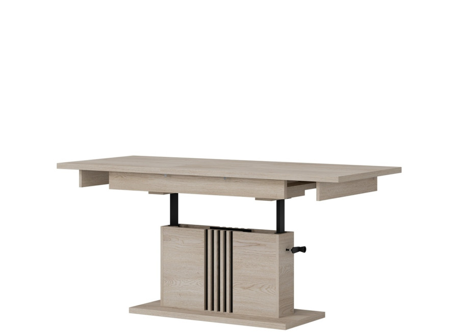 Konferenčný stolík MATI LA13 patrí do obľúbenej sektorovej kolekcie a je navrhnutý tak, aby sa prispôsobil vášmu priestoru. V základnom rozmere 126 × 67,5 cm plní funkciu elegantného stolíka k sedacej súprave, no jednoduchým rozložením ho zväčšíte na 160 × 67,5 cm – ideálne riešenie pri návštevách, rodinných oslavách či večeroch so spoločenskými hrami. Jeho praktickosť podčiarkuje aj nastaviteľná výška v rozmedzí od 59,5 do 75 cm, vďaka čomu si ho prispôsobíte presne podľa aktuálnej potreby. Stolík je vyrobený z kvalitnej laminovanej drevotriesky s hrúbkou 16 mm s ABS hranami, ktoré zvyšujú jeho životnosť. Prevedenie v dekore dub cremona cotta pôsobí prirodzene a ľahko sa kombinuje s ďalším nábytkom v obývacej izbe.