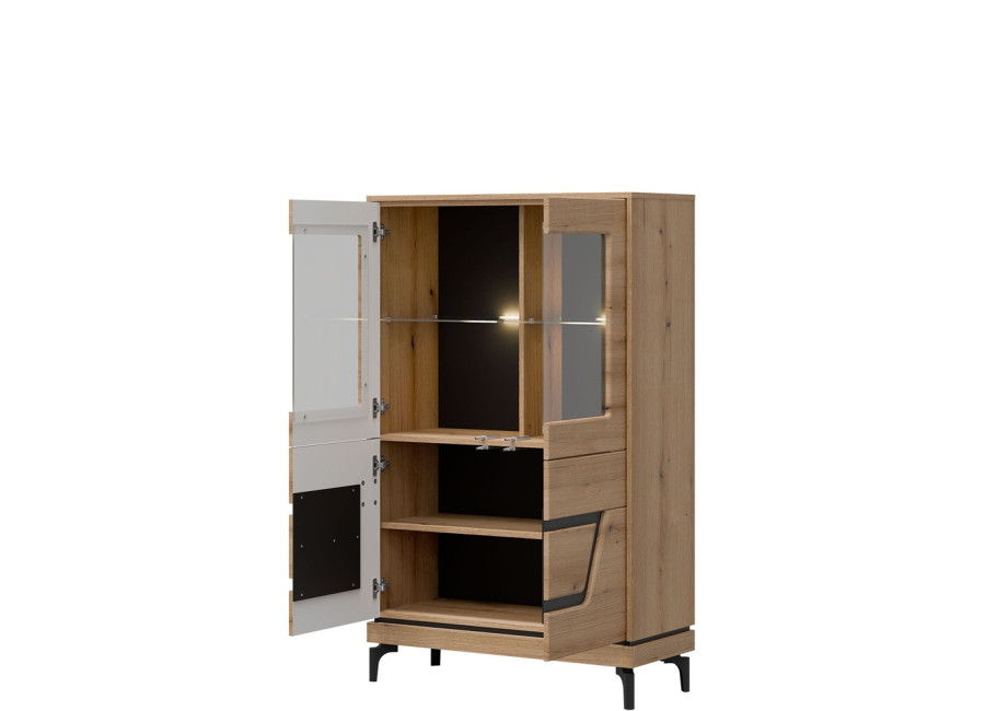 Vitrína KS04 z obývacej steny KRIS dokonale spája funkčnosť s eleganciou. So šírkou 92 cm ponúka veľkorysý priestor na vaše najvzácnejšie fotografie či štýlové dekorácie.