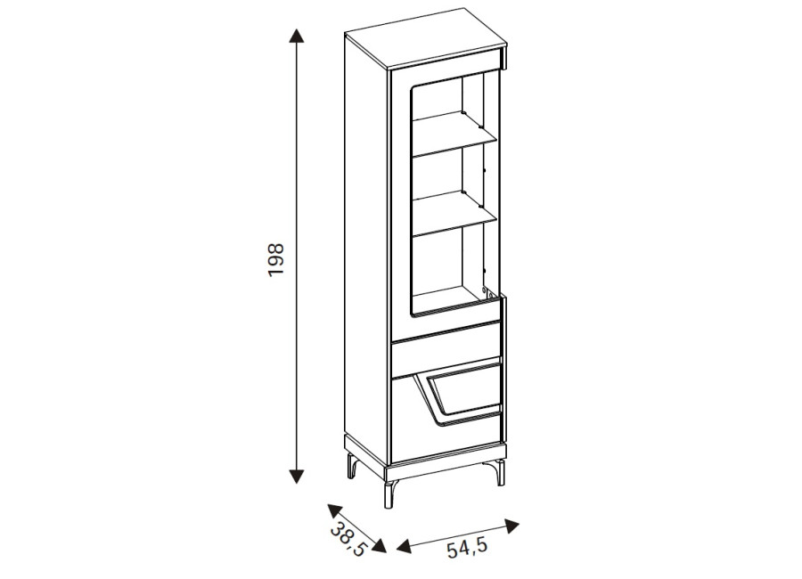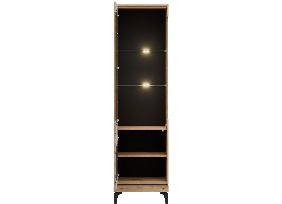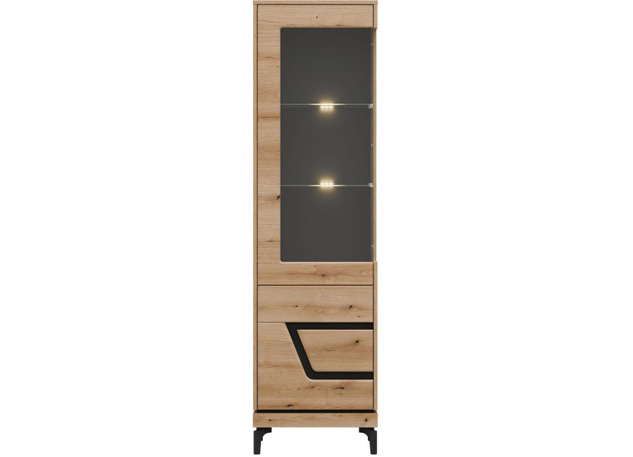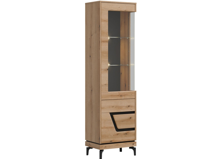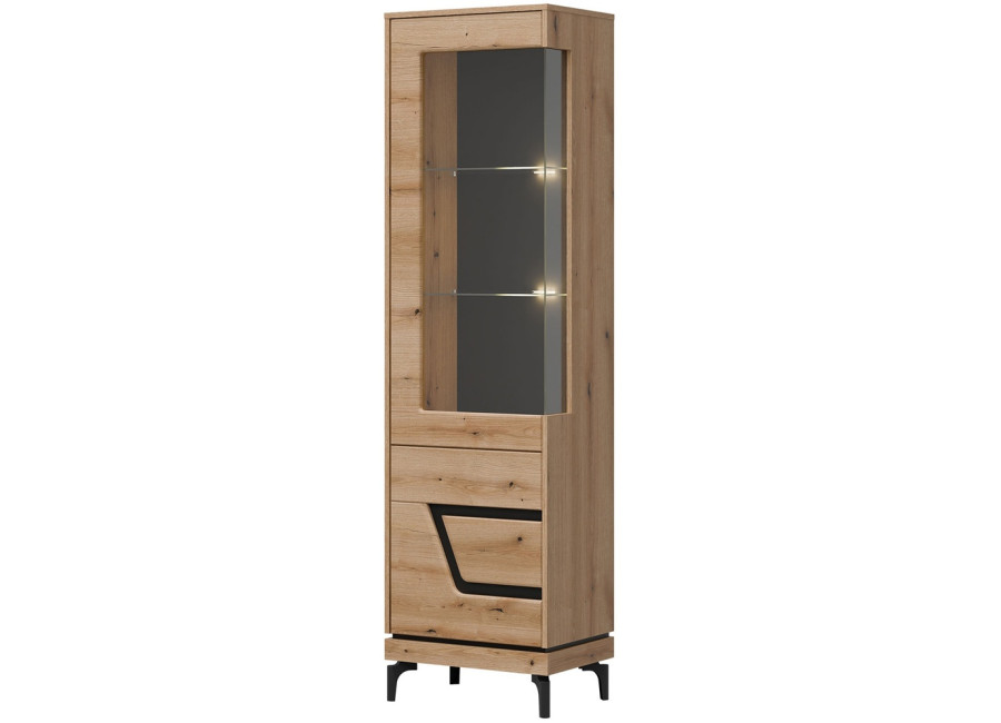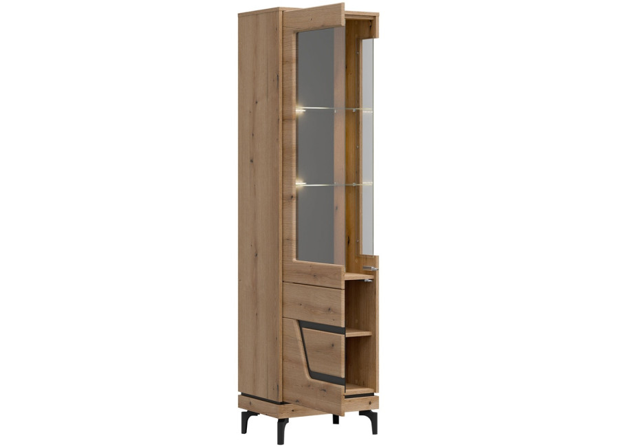 Vitrína VERO VR05 je štíhle a praktické riešenie, ideálne do menších miestností alebo ako doplnok k väčšej zostave v rámci obývacej steny. So šírkou 54,5 cm nezaberie veľa miesta, no ponúkne príjemný úložný priestor. Disponuje dvojicou dvierok, pričom horné sú presklené, takže v nich vyniknú dekorácie či obľúbené kúsky.