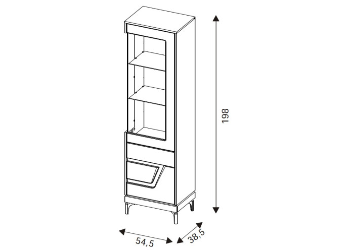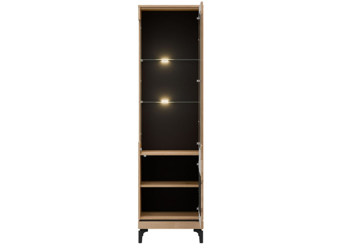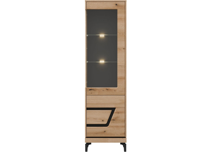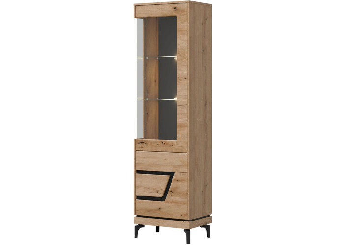 Vitrína VERO VR06 je štíhle a praktické riešenie, ideálne do menších miestností alebo ako doplnok k väčšej zostave v rámci obývacej steny. So šírkou 54,5 cm nezaberie veľa miesta, no ponúkne príjemný úložný priestor. Disponuje dvojicou dvierok, pričom horné sú presklené, takže v nich vyniknú dekorácie či obľúbené kúsky.