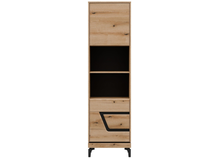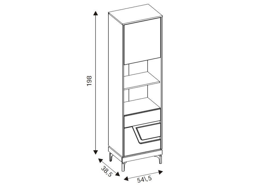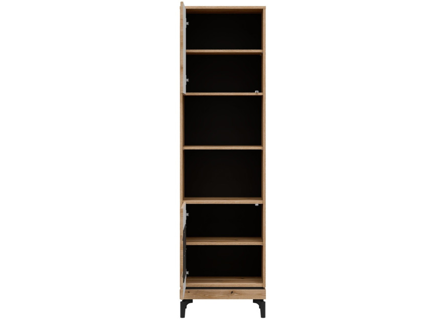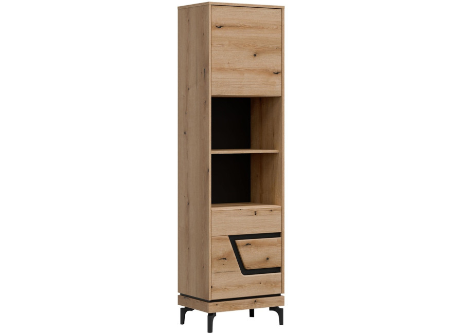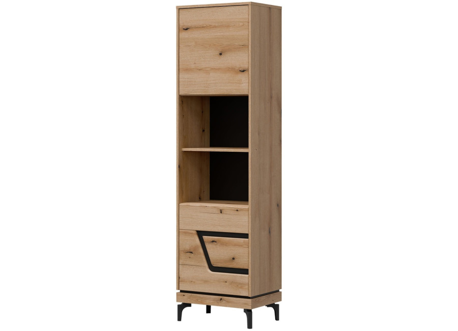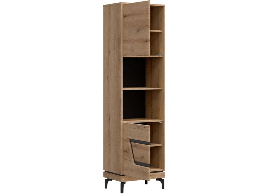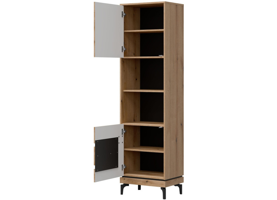 Policová skriňa KRIS KS07 je úzky, no mimoriadne praktický doplnok do obývacej steny. V kompaktnom prevedení so šírkou 54,5 cm funguje ako regál aj policová skriňa zároveň. Dvoje dvierka ukrývajú prehľadne riešený úložný priestor, ktorý sa hodí na odkladanie rôznych vecí každodennej potreby.