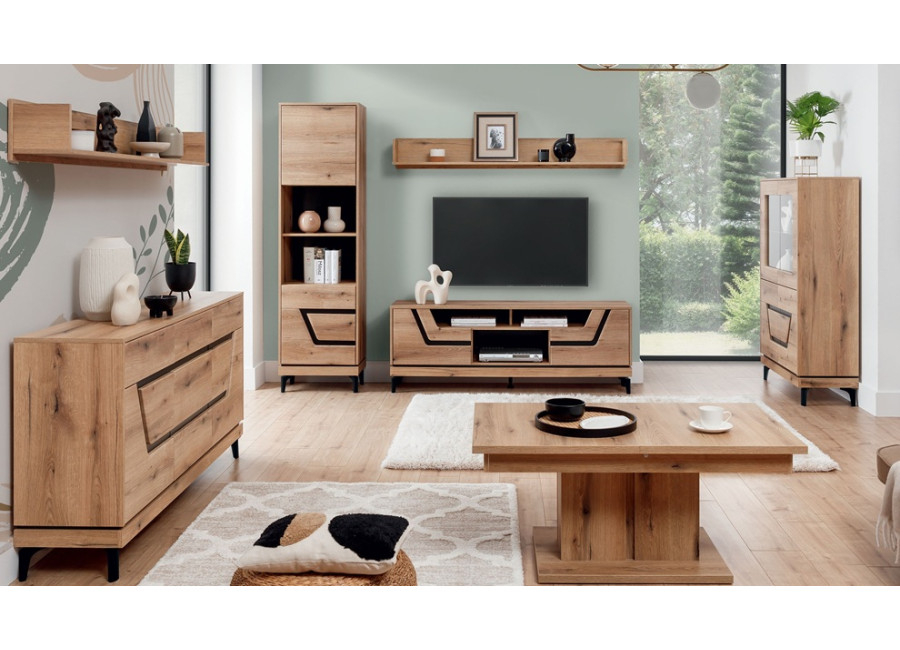 Sektorový nábytok KRIS zahŕňa TV stolíky, komody, vitríny, skrine, konferenčný stolík aj police. Všetky prvky na seba nadväzujú rozmerovo aj štýlovo, takže si môžete poskladať presne taký obývací priestor, aký potrebujete – funkčný a harmonický.