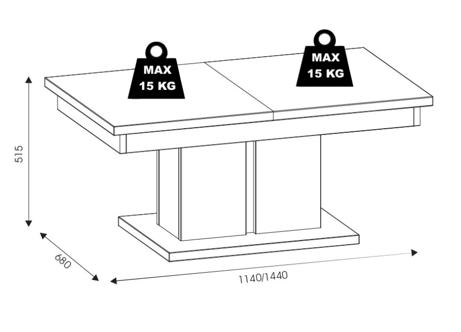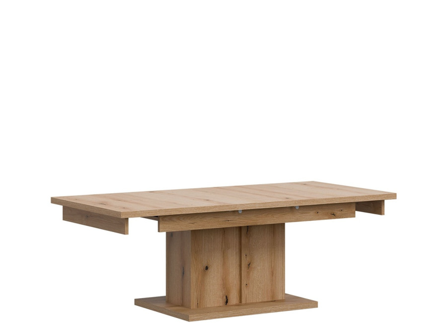 Konferenčný stolík LA01 patrí do sektorovej obývacej steny KRIS. Ide o praktický rozkladací stolík s rozmermi 114 × 68 cm, ktorý po rozložení ponúkne až 144 × 68 cm. V každodennom používaní funguje ako klasický stolík k sedacej súprave, no keď príde návšteva, rodinné stretnutie či večer spoločenských hier, jednoducho ho rozšírite a získate viac miesta pre všetko, čo k pohodovej atmosfére patrí. Vyrobený je z laminovanej drevotriesky s hrúbkou 16 mm s ABS hranami. Farebné prevedenie dub evoke pôsobí prirodzene, nadčasovo a ľahko ho zladíte s ostatným nábytkom v obývačke.