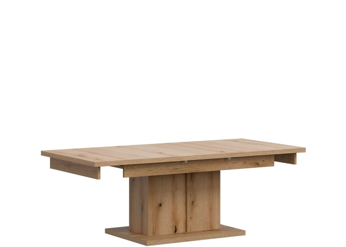 Konferenčný stolík LA01 patrí do sektorovej obývacej steny KRIS. Ide o praktický rozkladací stolík s rozmermi 114 × 68 cm, ktorý po rozložení ponúkne až 144 × 68 cm. V každodennom používaní funguje ako klasický stolík k sedacej súprave, no keď príde návšteva, rodinné stretnutie či večer spoločenských hier, jednoducho ho rozšírite a získate viac miesta pre všetko, čo k pohodovej atmosfére patrí. Vyrobený je z laminovanej drevotriesky s hrúbkou 16 mm s ABS hranami. Farebné prevedenie dub evoke pôsobí prirodzene, nadčasovo a ľahko ho zladíte s ostatným nábytkom v obývačke.