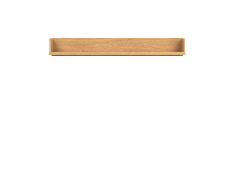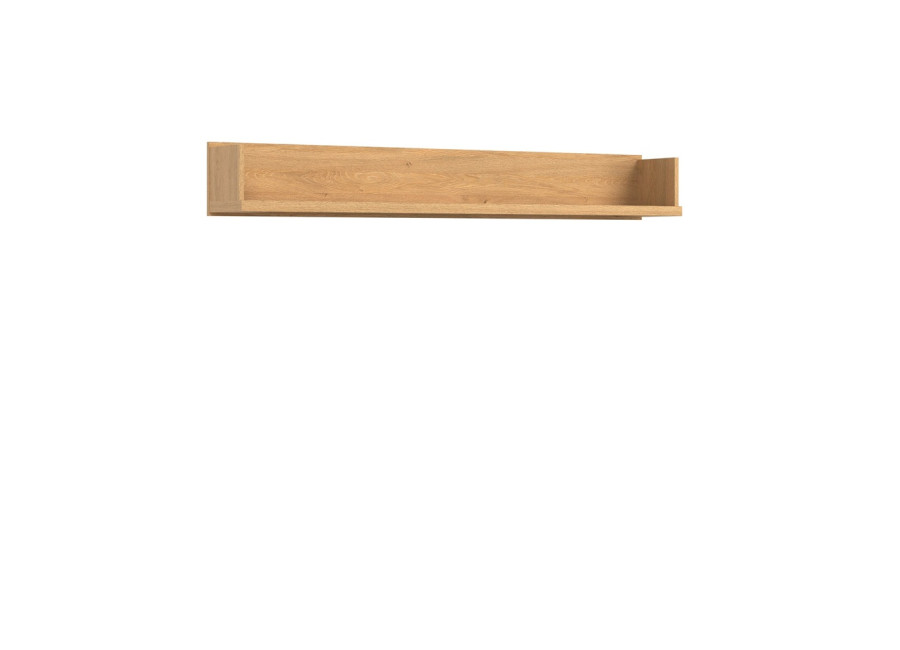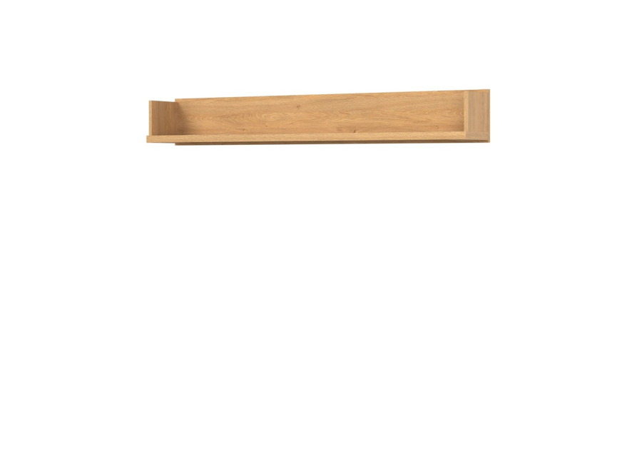 Nástenná polica ATE AT10 je štýlový doplnok z kolekcie ATE, ktorý elegantne doplní prázdny priestor nad TV stolíkom či komodou, prípadne vynikne aj samostatne na stene. Je vyrobená z 16 mm laminovanej dosky s odolnými ABS hranami v dekore dub kamenný. Ideálne poslúži na vystavenie fotografií, menších kníh alebo drobných dekorácií a doplnkov k domácej elektronike.