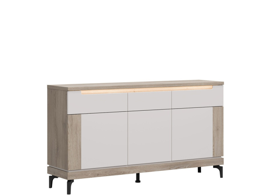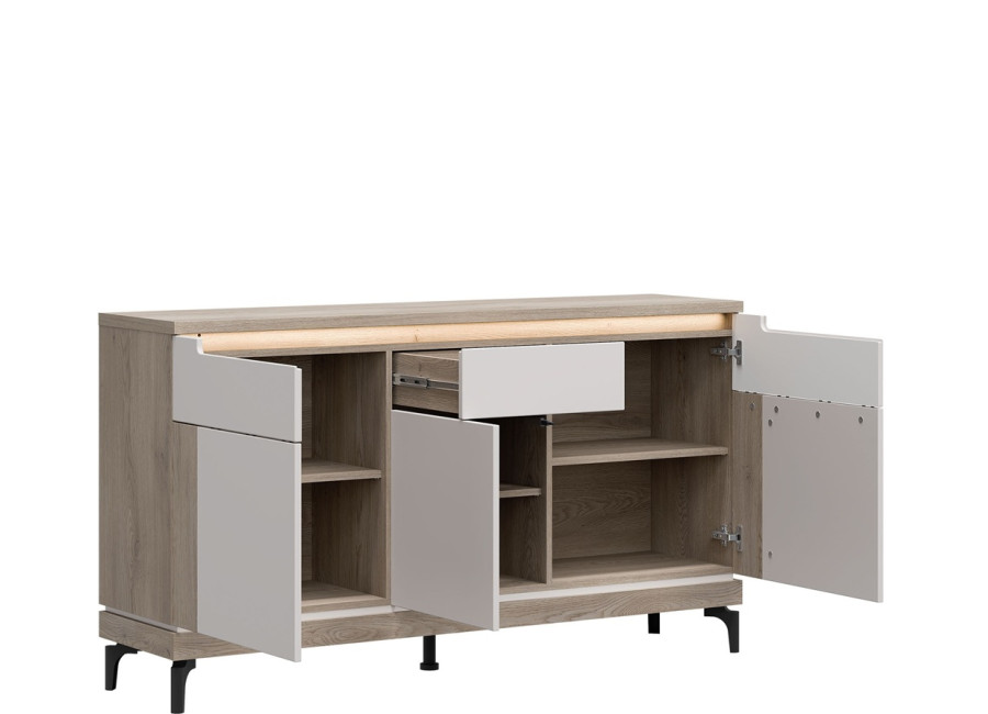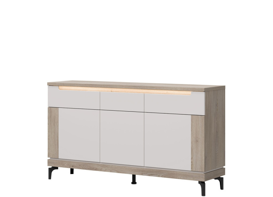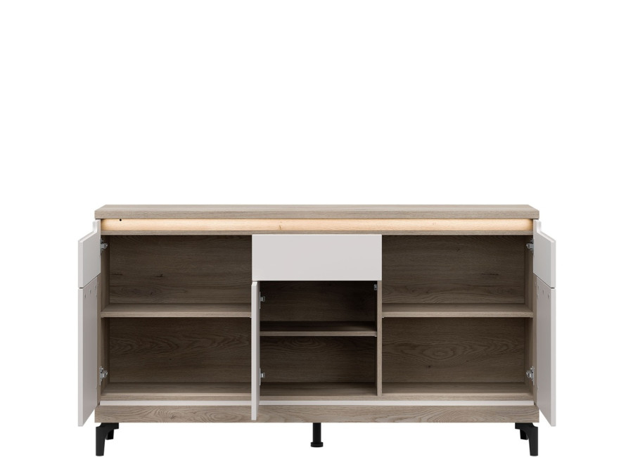 Komoda ASTON AN03 je elegantný a mnohostranne využiteľný kus nábytku, ktorý si nájde miesto v obývačke, spálni aj detskej izbe. Zásuvku s plnovýsuvom oceníte na drobnosti a dokumenty. Vrchná doska s hrúbkou 28 mm a jemný dekor dub cremona v kombinácii s kašmírom jej dodávajú moderný vzhľad, ktorý sa prirodzene začlení do každého súčasného interiéru.
